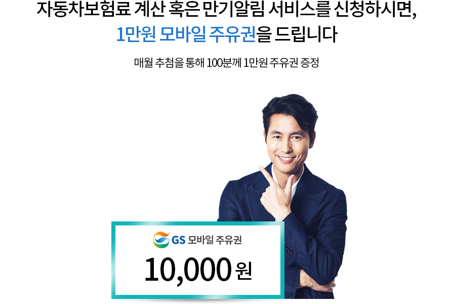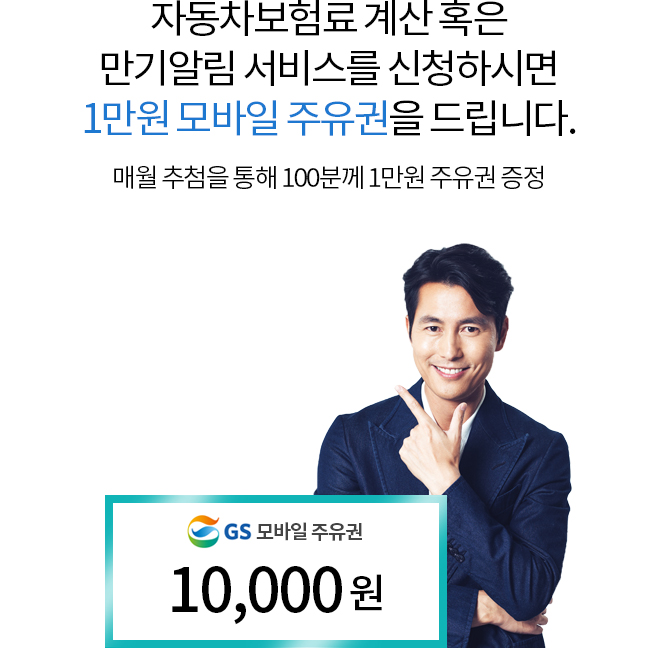자동차보험료 계산 혹은 만기알림 서비스를 신청하시면, 1만원 모바일 주유권을 드립니다.